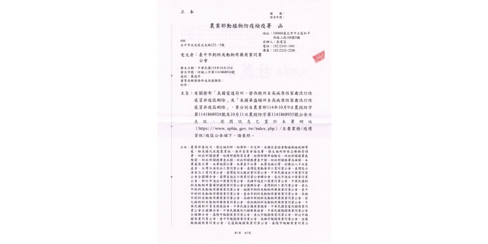 「美國愛達荷州、密西根州自高病原性家禽流行性感冒非疫區刪除」