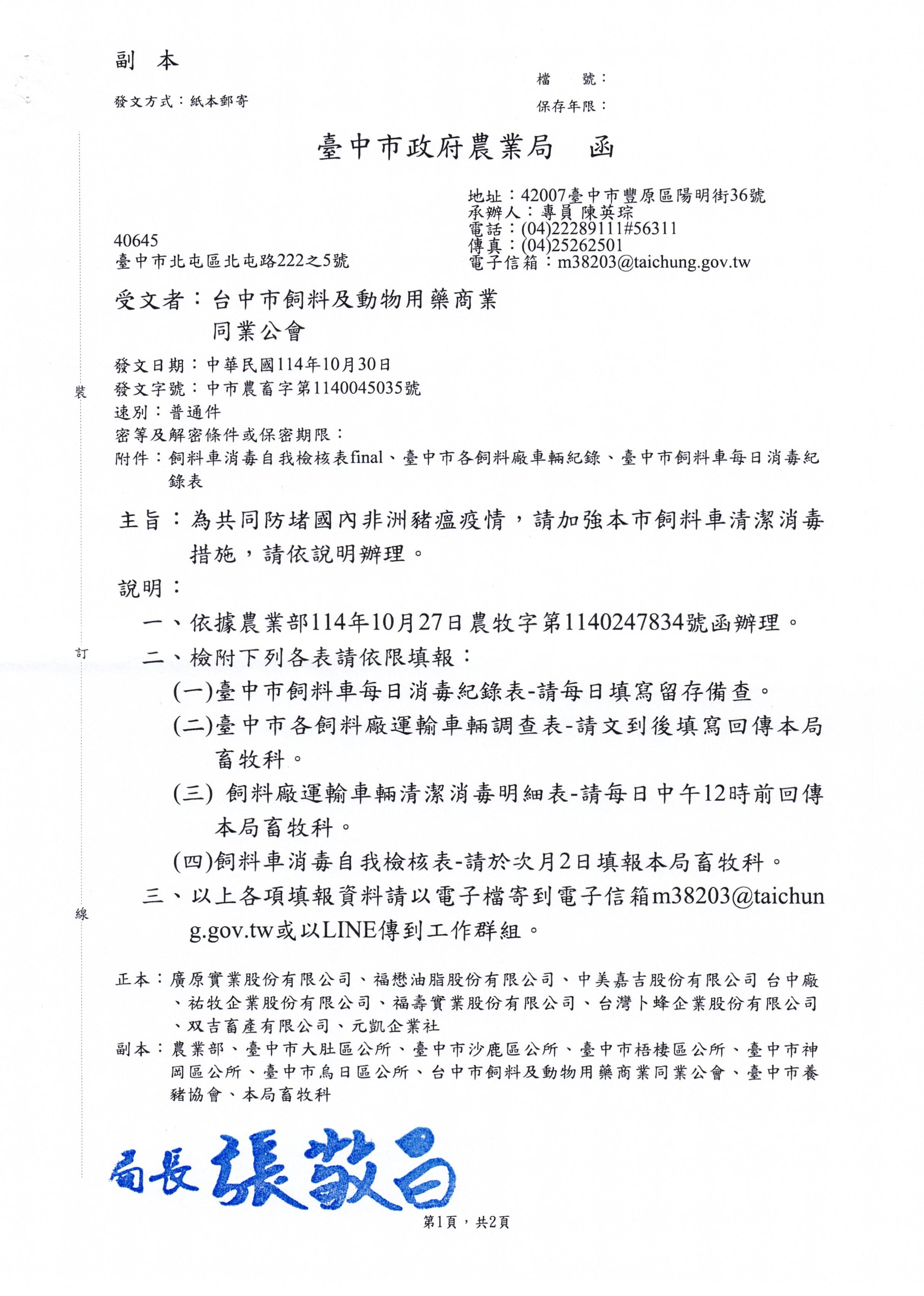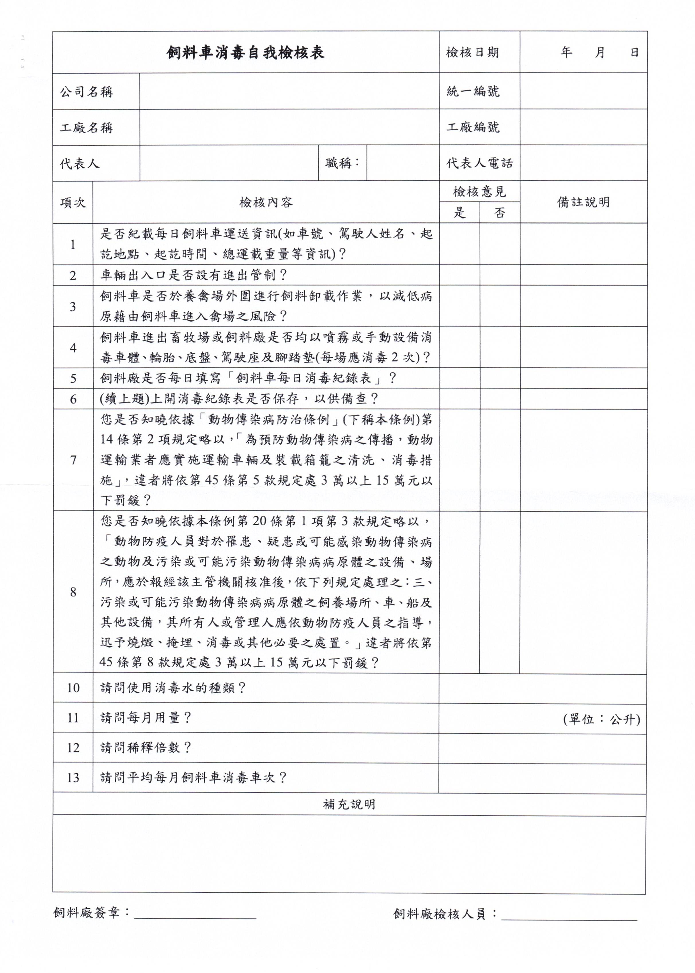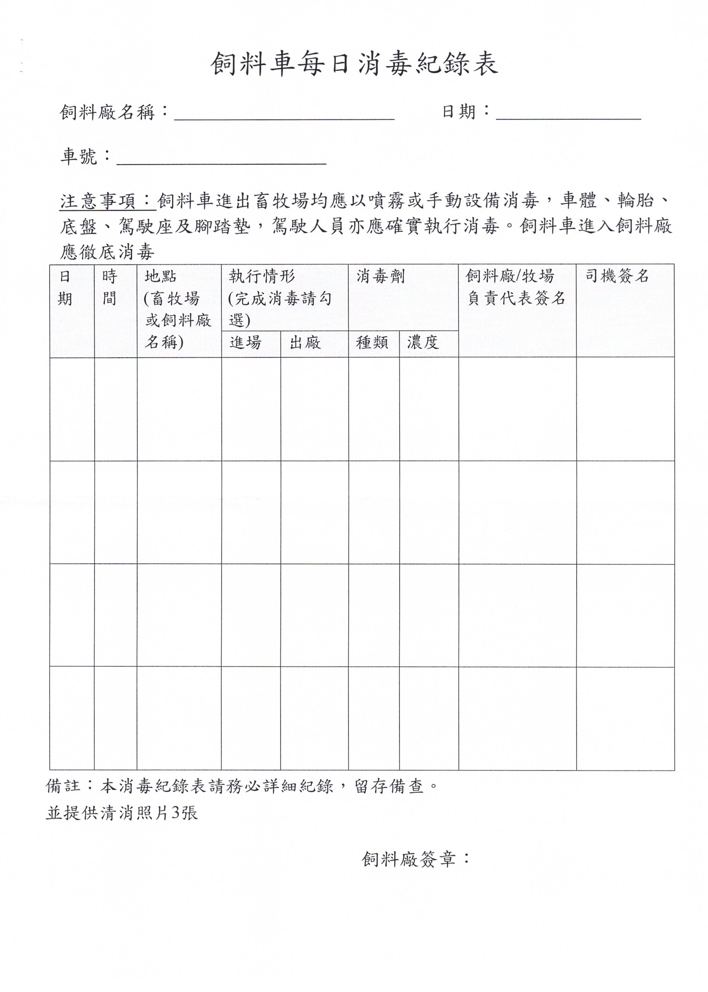 防堵國內非洲豬瘟疫情,請加強本市飼料車清潔消毒措施
