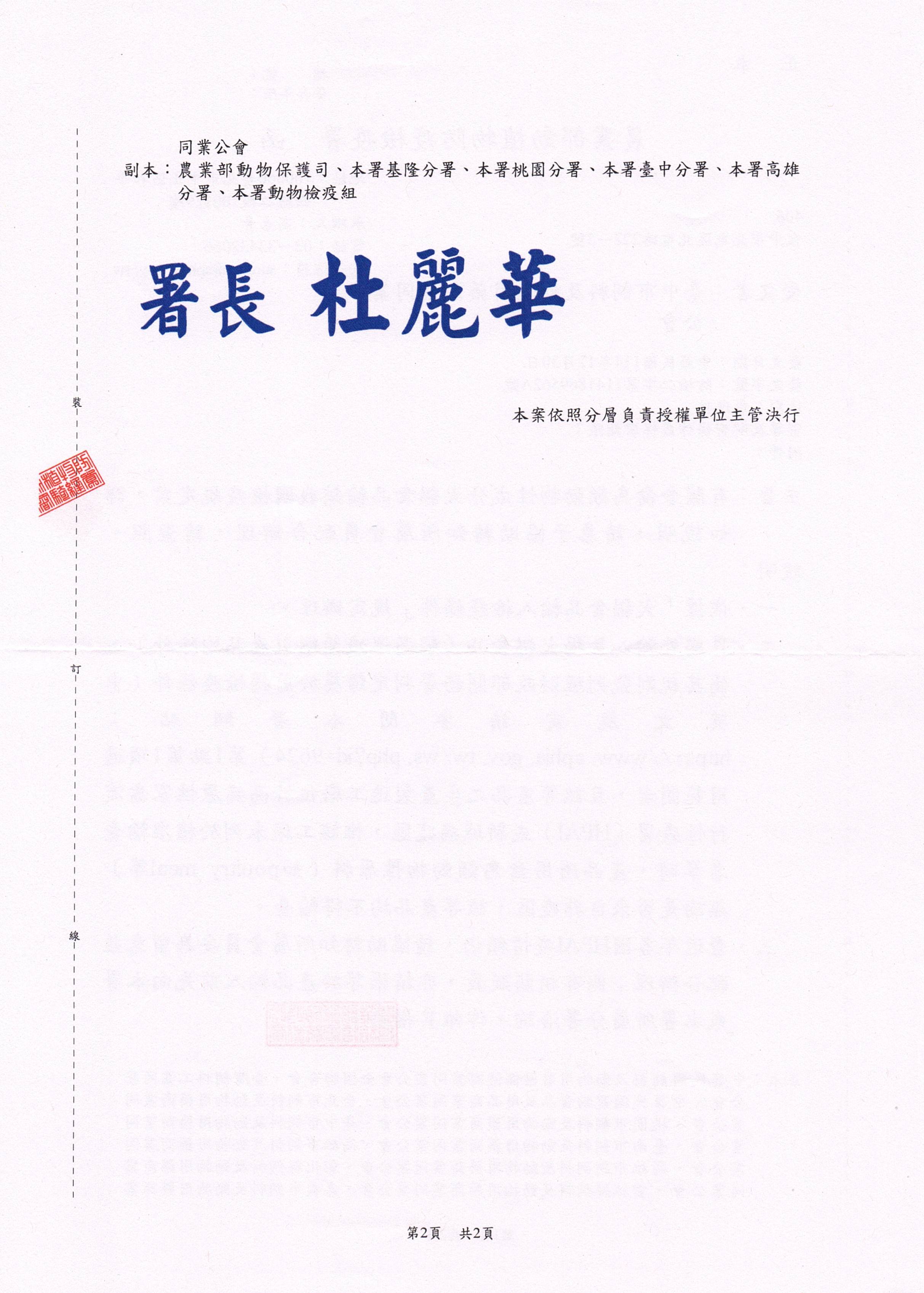 含禽鳥類動物性成分犬貓食品輸銷我國檢疫規定案, 請查照。