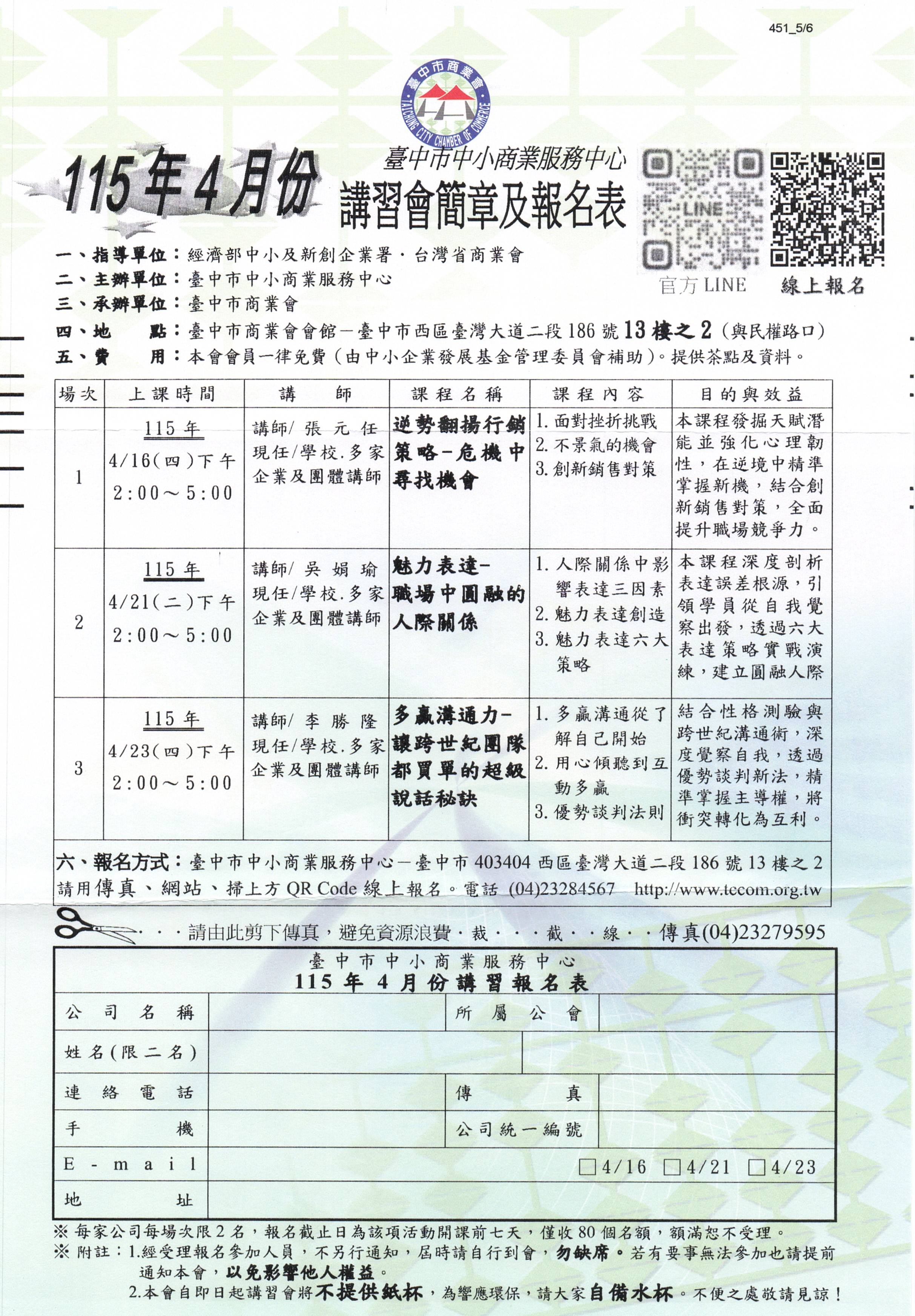 3-4月企業經營講習課程